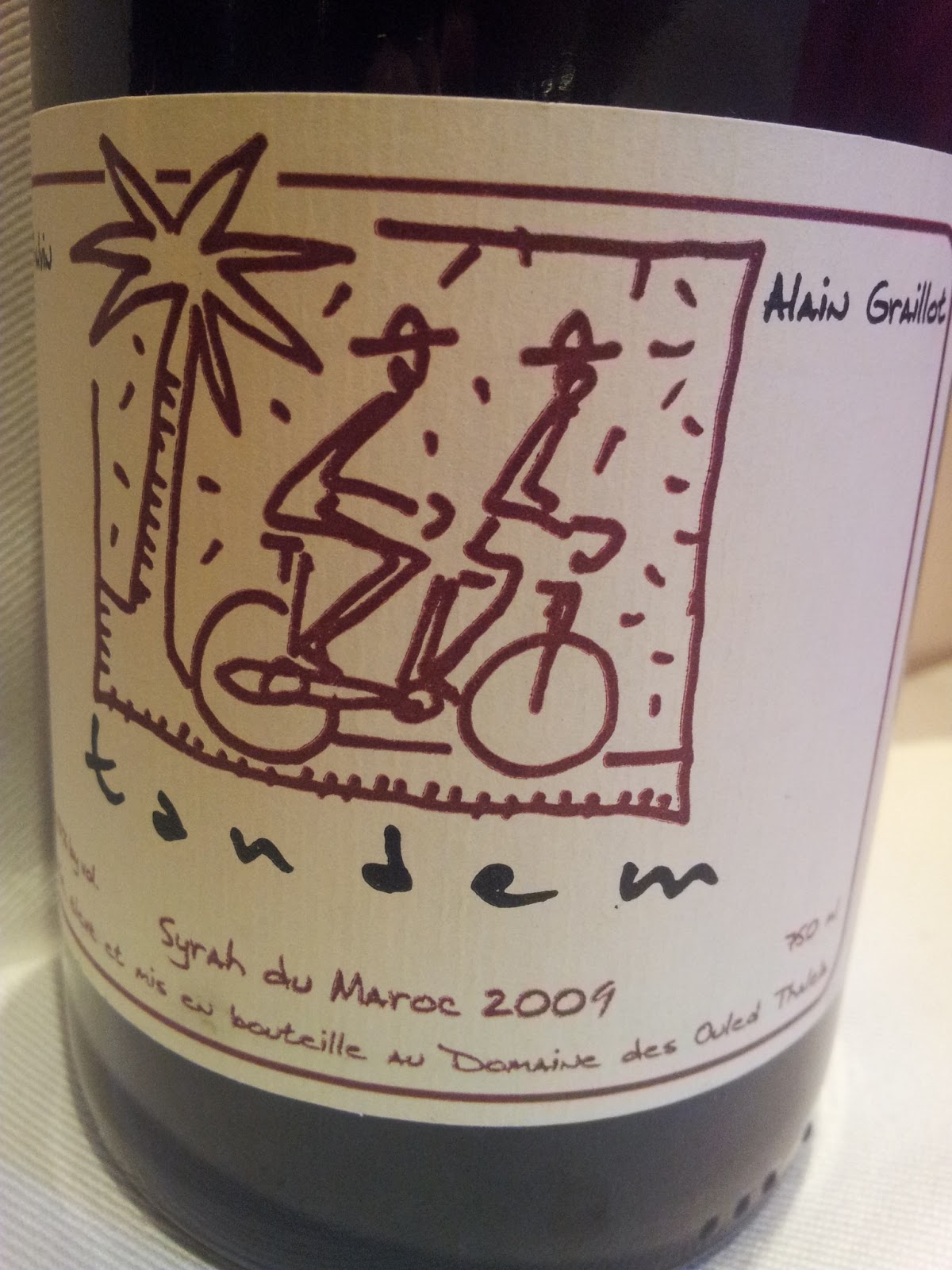 Entre manos tenemos su Tandem "Syrah du Maroc" 2009, un producto atractivo por su historia, por su productor, por la curiosidad y, ¿por qué no?, también por la prohibición.
